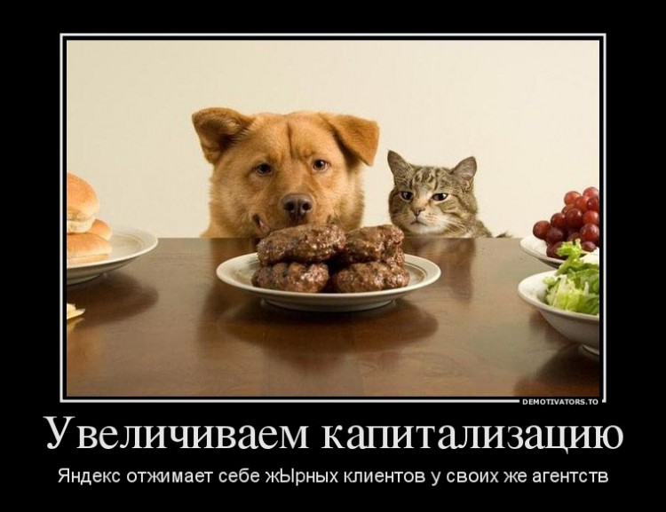 Из комментариев на Роеме: Работали напрямую с Яндексом около года, ужасное обслуживание. Перешли в агентство, обслуживание устраивает. Теперь попали в этот список. Следующим шагом, видимо, придется доплачивать агентству за ведение кампаний. При этом при переходе потеряли накопленную скидку. Одни потери для всех кроме Яндекса